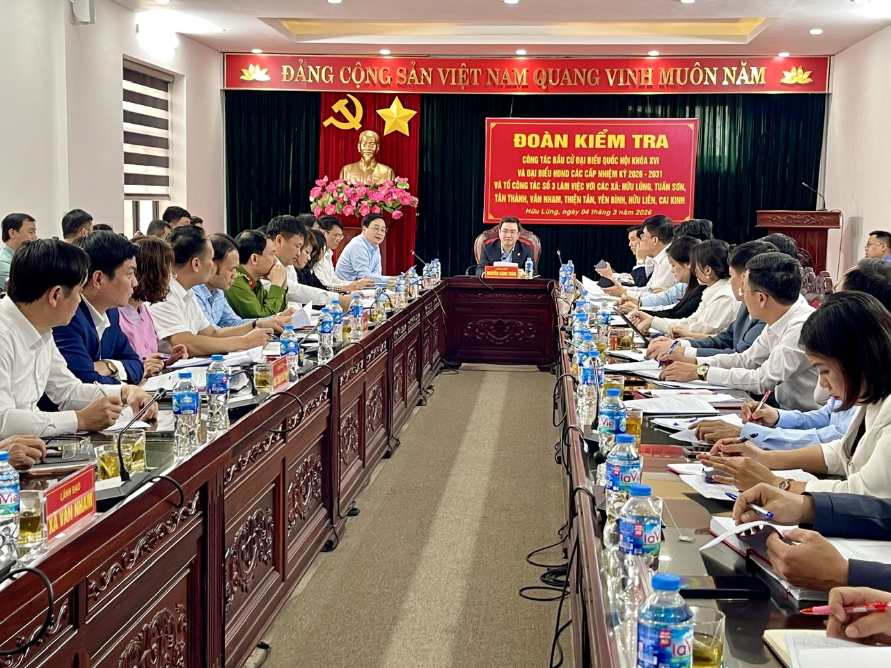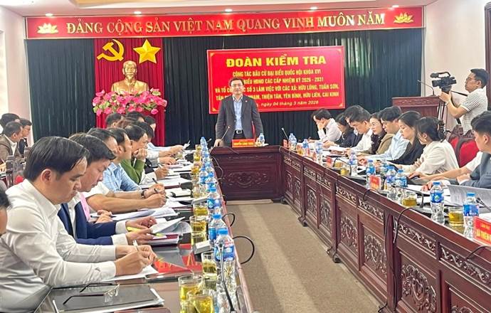 Chiều 04/3, Đoàn kiểm tra số 3 của Ban Chỉ đạo bầu cử tỉnh do đồng chí Nguyễn Cảnh Toàn, Phó Bí thư Tỉnh ủy, Chủ tịch UBND tỉnh làm trưởng đoàn đã kiểm tra công tác bầu cử đại biểu Quốc hội khoá XVI và đại biểu HĐND các cấp nhiệm kỳ 2026 - 2031 tại các xã: Hữu Lũng, Tuấn Sơn, Tân Thành, Vân Nham, Thiện Tân, Yên Bình, Hữu Liên, Cai Kinh. Tham gia đoàn có đồng chí Vũ Hoàng Quý, Ủy viên Ban Thường vụ Tỉnh ủy, Chủ nhiệm Ủy ban Kiểm tra Tỉnh ủy cùng lãnh đạo một số sở, ban, ngành.