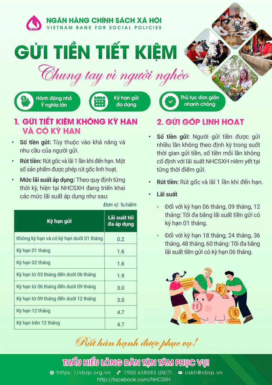 GỬI TIẾT KIỆM TẠI NGÂN HÀNG CHÍNH SÁCH XÃ HỘI LÀ HOẠT ĐỘNG THỂ HIỆN TÍNH NHÂN VĂN SÂU SẮC, AN TOÀN, LINH HOẠT, LỢI ÍCH VƯỢT TRỘI - CÙNG CHUNG TAY GIẢM NGHÈO