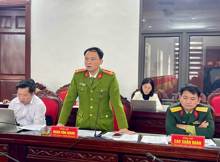 Lãnh đạo Công an xã phát biểu tại cuộc họp