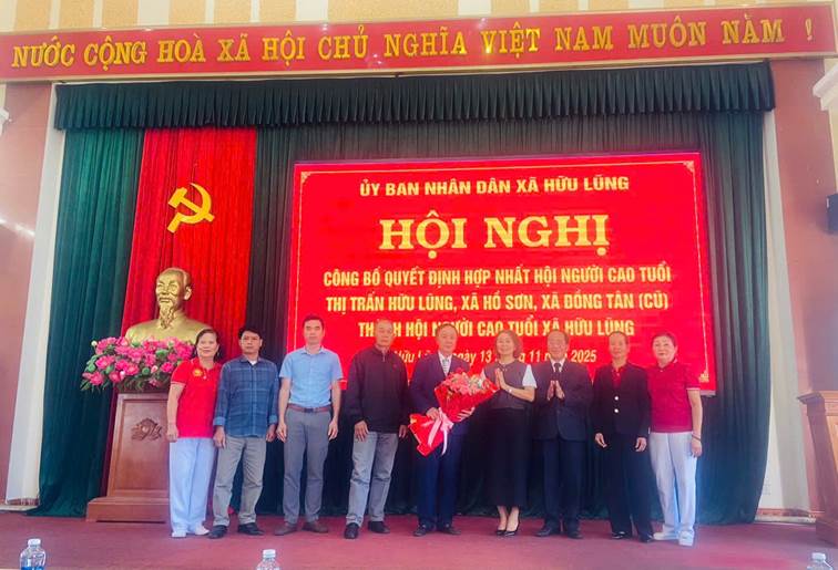 Sáng ngày 13/11/2025, tại Hội trường tầng 4 UBND xã Hữu Lũng đã diễn ra Hội nghị công bố Quyết định cho phép hợp nhất Hội Người cao tuổi thị trấn Hữu Lũng, Hội Người cao tuổi xã Hồ Sơn và Hội Người cao tuổi xã Đồng Tân (trước khi sắp xếp đơn vị hành chính) thành Hội Người cao tuổi xã Hữu Lũng (sau sắp xếp đơn vị hành chính). Sự kiện đánh dấu bước phát triển mới trong tổ chức và hoạt động của Hội tại địa phương, tạo điều kiện thuận lợi để tập trung nguồn lực, nâng cao hiệu quả hoạt động hội và chăm lo đời sống hội viên.
