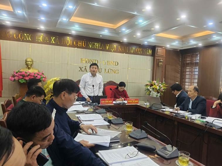 Đồng chí Cao Văn Hoà, Chủ tịch UBND xã phát biểu tại Hội nghị