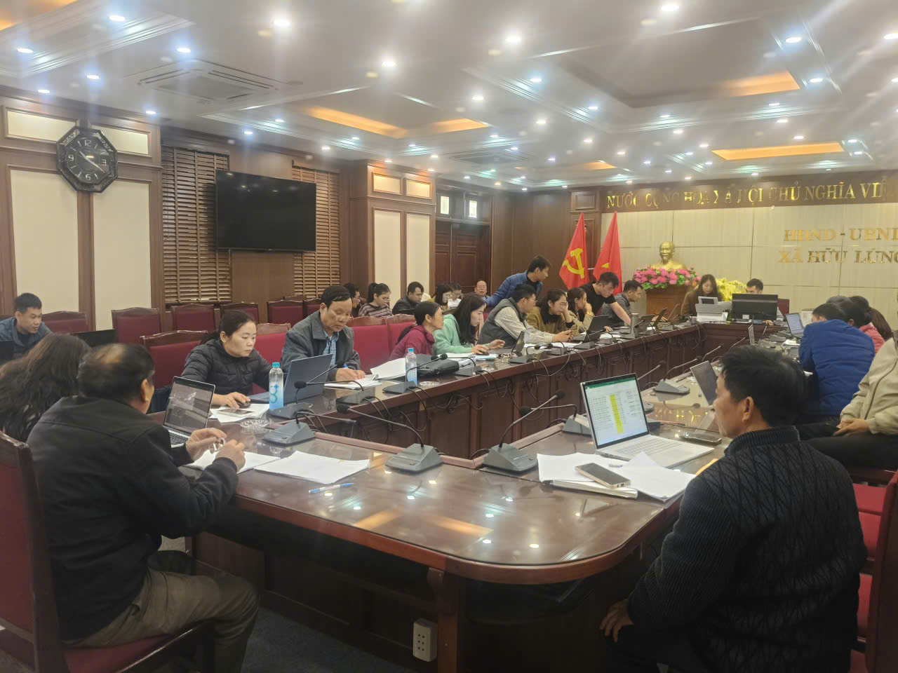 Tham dự cuộc họp có Tổ chuyên viên giúp việc cho Ủy ban bầu cử đại biểu HĐND xã Hữu Lũng nhiệm kỳ 2026–2031 và đại diện toàn bộ 34/34 thôn trên địa bàn xã.