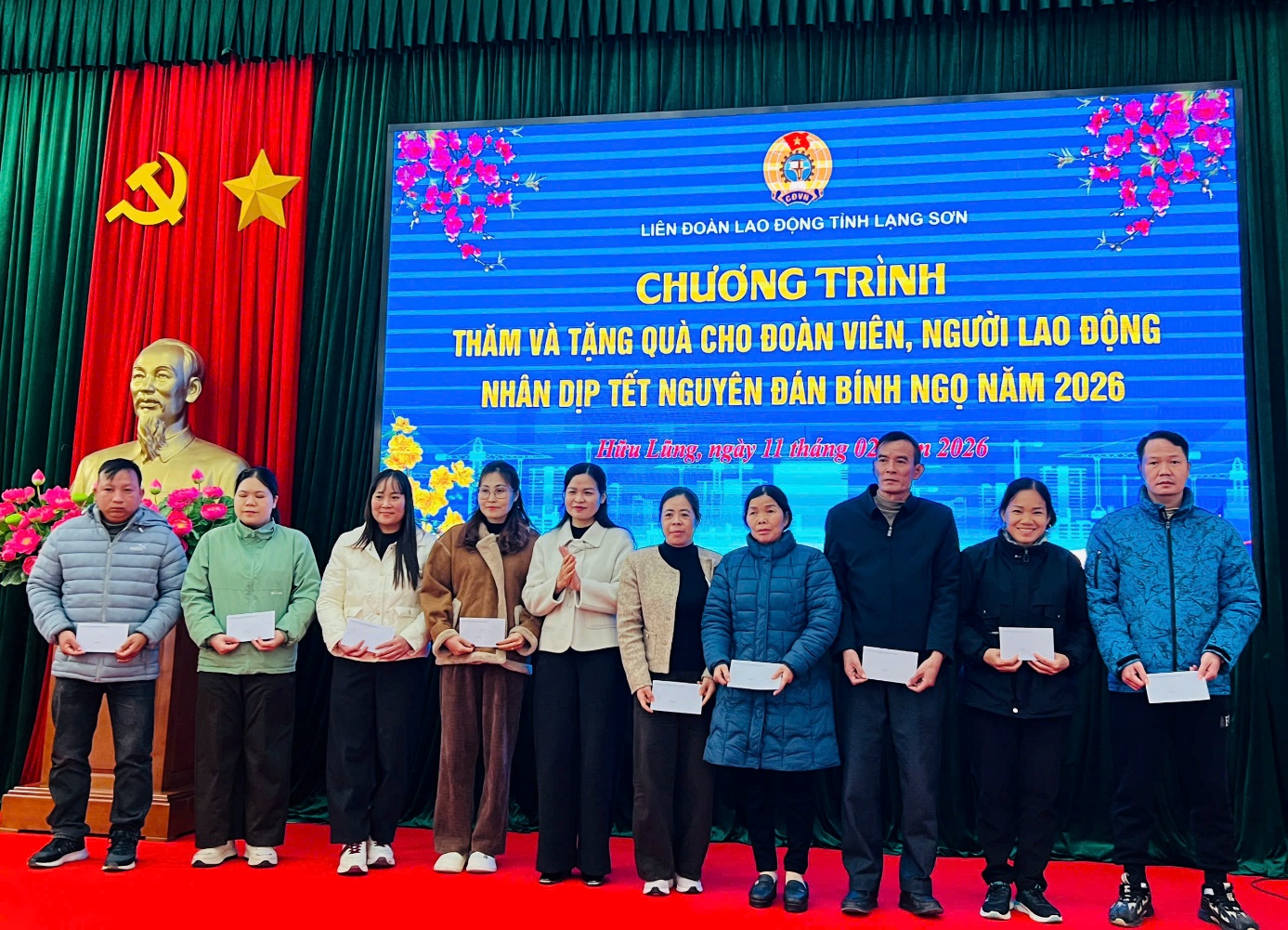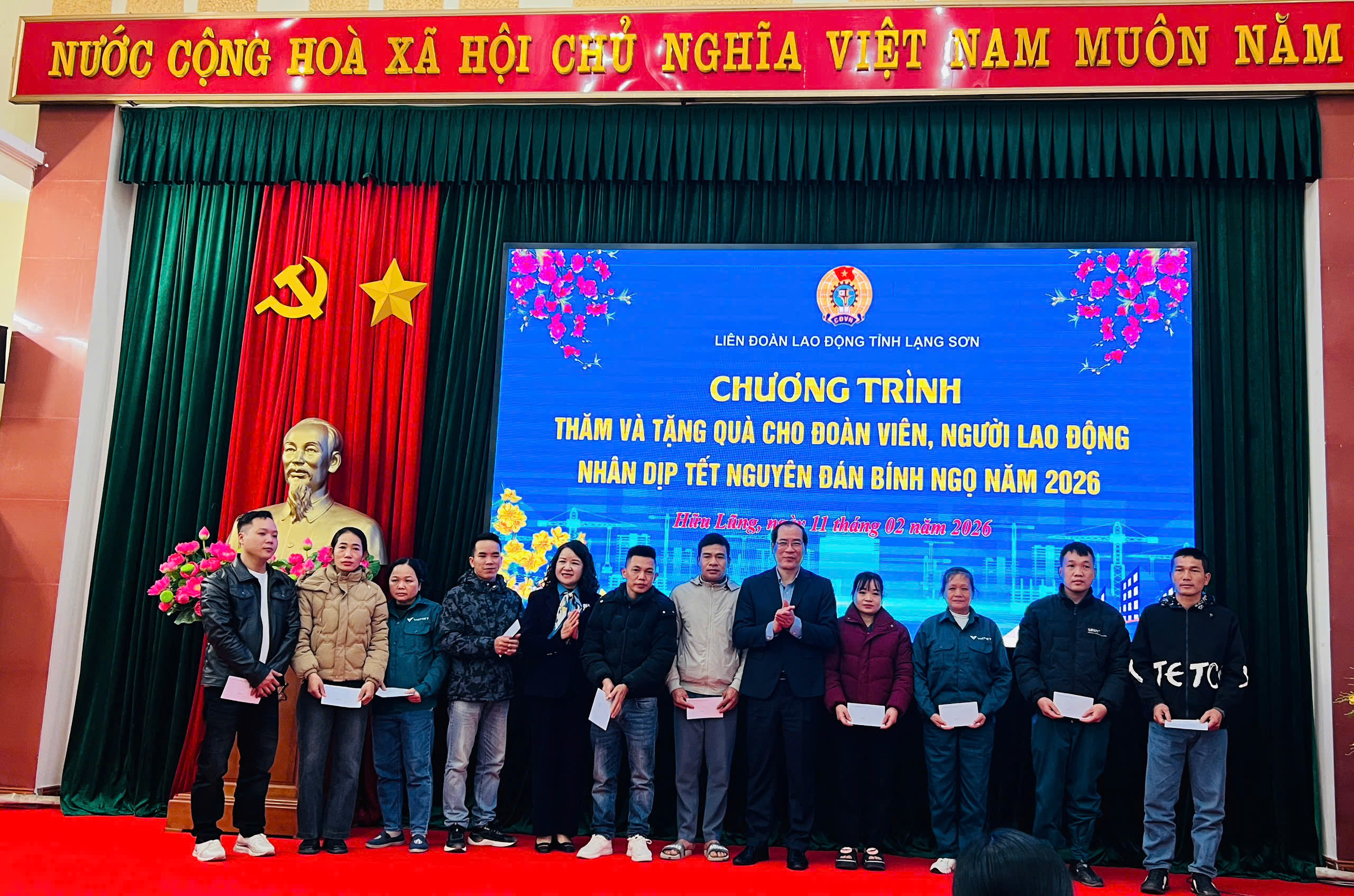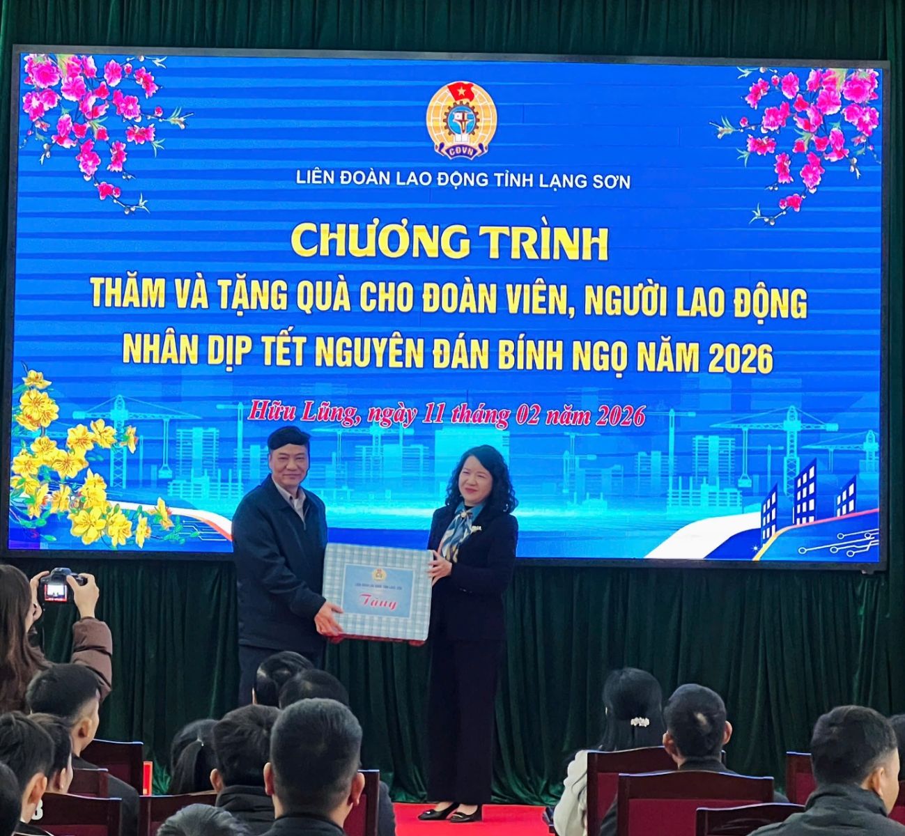 Trong chương trình, LĐLĐ tỉnh đã trao 120 suất quà tết (mỗi suất trị giá 1 triệu đồng) cho ĐVNLĐ của các đơn vị, doanh nghiệp gồm: Trung tâm Y tế khu vực Chi Lăng; Trung tâm Y tế khu vực Hữu Lũng; Công ty TNHH Tập đoàn Gỗ Hương Sơn; Công ty TNHH Thực nghiệp Tân Hải; Công ty TNHH Thương mại Phát triển Thành Đông; Công ty TNHH Baifar Lạng Sơn; Công ty Cổ phần Lâm sản Đồng Phú; Công ty TNHH Thương mại Chính Bang - Chi nhánh số 1. Đồng thời, trao 1 suất quà cho Trung tâm Y tế khu vực Hữu Lũng.
