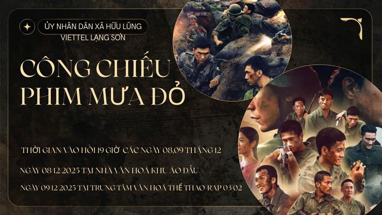 📢🔥 THÔNG BÁO LỊCH CHIẾU PHIM “MƯA ĐỎ” – HOÀN TOÀN MIỄN PHÍ! 🎬🌧️ 🇻🇳✨ UBND xã Hữu Lũng trân trọng giới thiệu Chương trình Nghệ thuật đặc biệt chào mừng các sự kiện chính trị quan trọng, tuyên truyền Cuộc bầu cử và Công chiếu phim “Mưa đỏ” phục vụ Nhân dân!