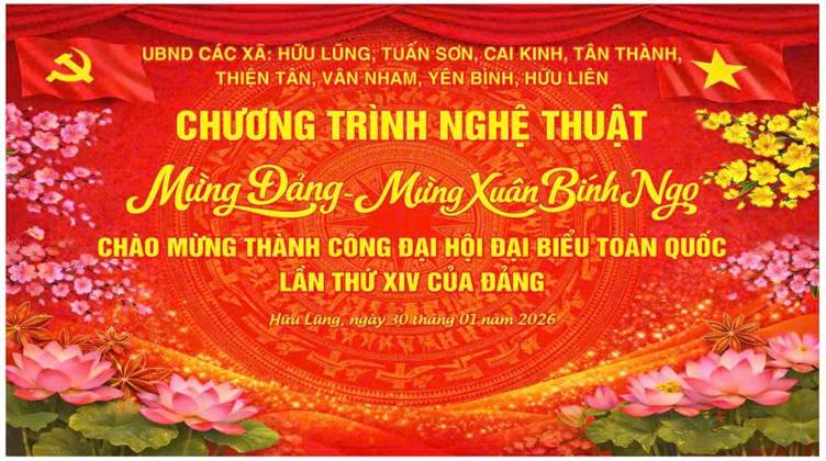 Thiết thực chào mừng kỷ niệm Ngày thành lập Đảng Cộng sản Việt Nam, mừng Xuân Bính Ngọ 2026 và chào mừng thành công Đại hội đại biểu toàn quốc lần thứ XIV của Đảng, các xã trên địa bàn cụm Hữu Lũng đang tích cực triển khai công tác chuẩn bị cho Chương trình văn nghệ quần chúng sẽ diễn ra vào tối ngày 30/01/2026 tại Nhà văn hóa cụm Hữu Lũng.