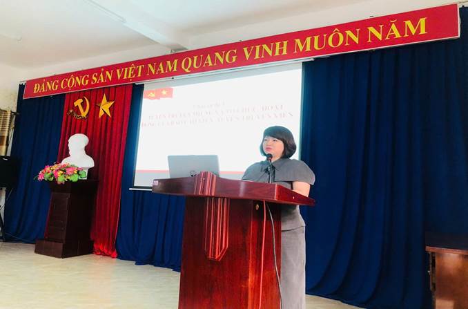 Đồng chí Lê Thùy Dung, Phó Bí thư Thường trực Đảng ủy xã Hữu Lũng, dự chỉ đạo và trực tiếp lên lớp bồi dưỡng chuyên đề 1.