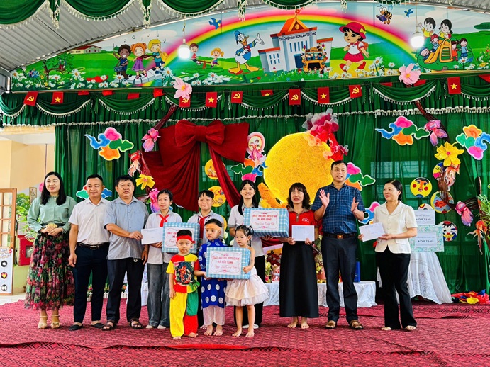 Đ/c Nguyễn Phúc Thật, Chủ tịch UBMTTQVN, Phó Chủ tịch HĐND xã tặng quà tại Trường Mầm non Hồ Sơn