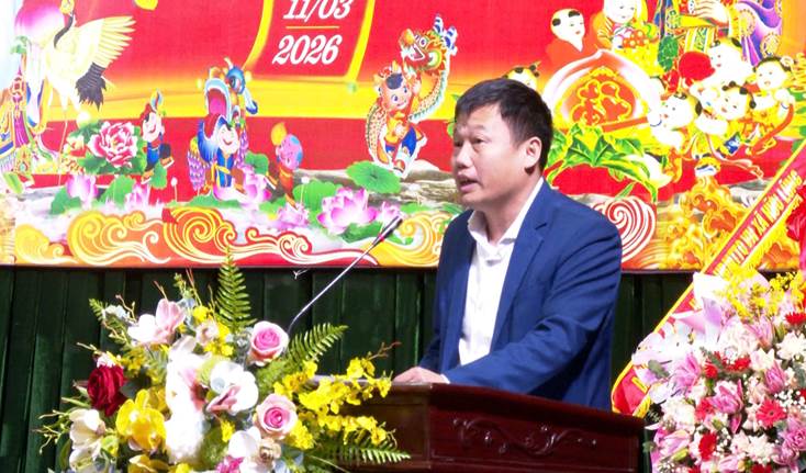 Đồng chí Cao Văn Hòa, Phó Bí thư Đảng ủy, Chủ tịch UBND xã phát biểu chúc mừng tại buổi Lễ