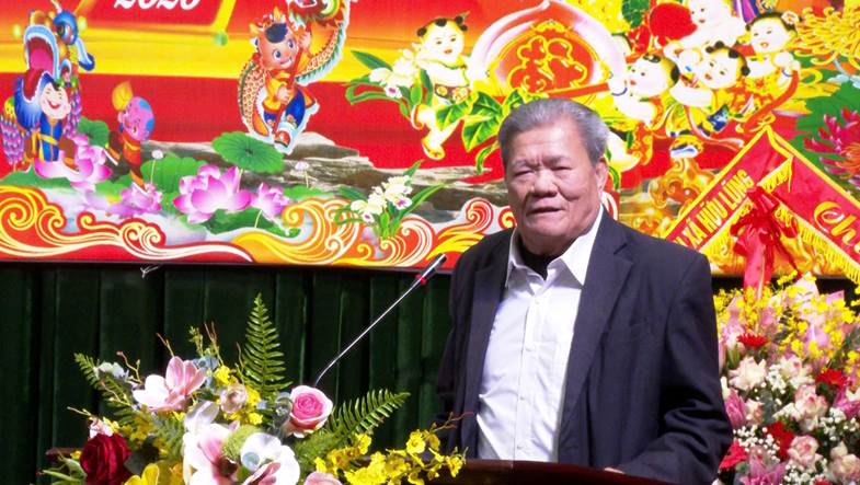 Ông Hoàng Pâu thôn Ngọc Thành đại diện những người được chúc thọ, mừng thọ năm 2026 phát biểu tại buổi lễ