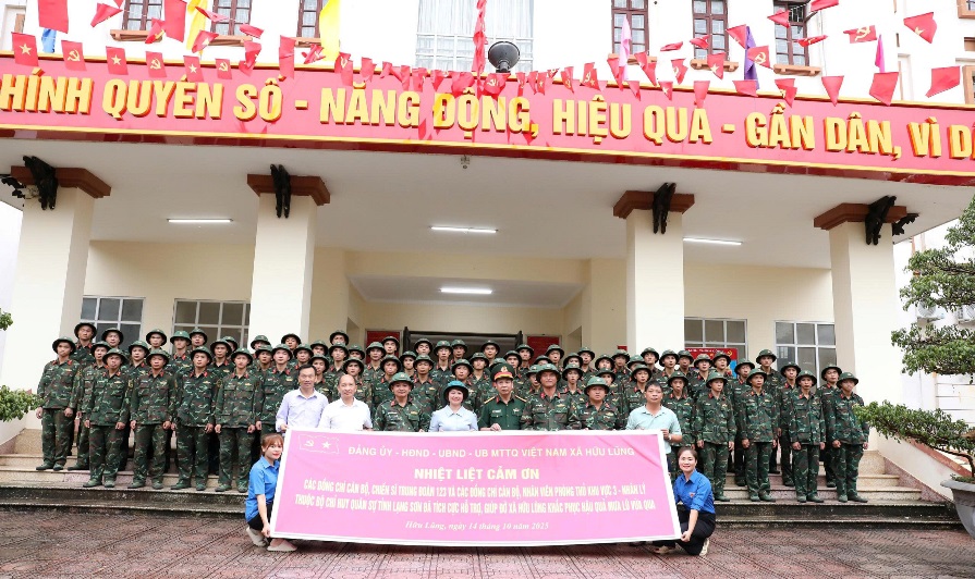 Chiều ngày 14/10/2025, Đảng ủy, HĐND, UBND, UBMTTQ cùng nhân dân xã Hữu Lũng tổ chức buổi gặp mặt, chia tay cán bộ, chiến sĩ Trung đoàn 123 – Bộ Chỉ huy Quân sự tỉnh Lạng Sơn và Phòng thủ khu vực 3 – Nhân Lý sau thời gian các đồng chí về giúp địa phương khắc phục hậu quả thiên tai.