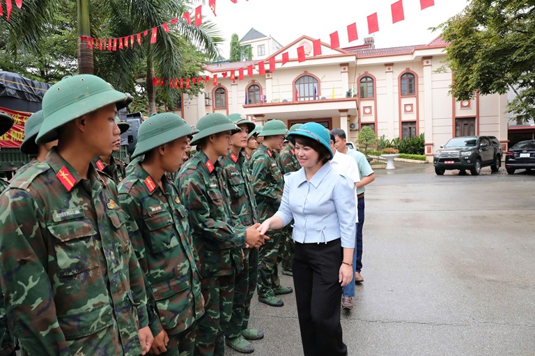 Đ/c Lê Thùy Dung, Phó Bí thư Thường trực Đảng ủy (hàng đầu) chia tay cán bộ, chiến sĩ