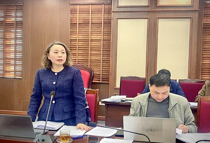 Đồng chí Từ Thu Thủy, Phó Chủ tịch UBND xã phát biểu ý kiến tại cuộc họp