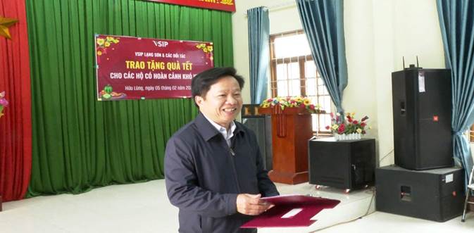 Đại diện Công ty TNHH Visip Lạng Sơn phát biểu tại buổi trao quà cho các hộ có hoàn cảnh khó khan trên địa bàn xã Hữu Lũng