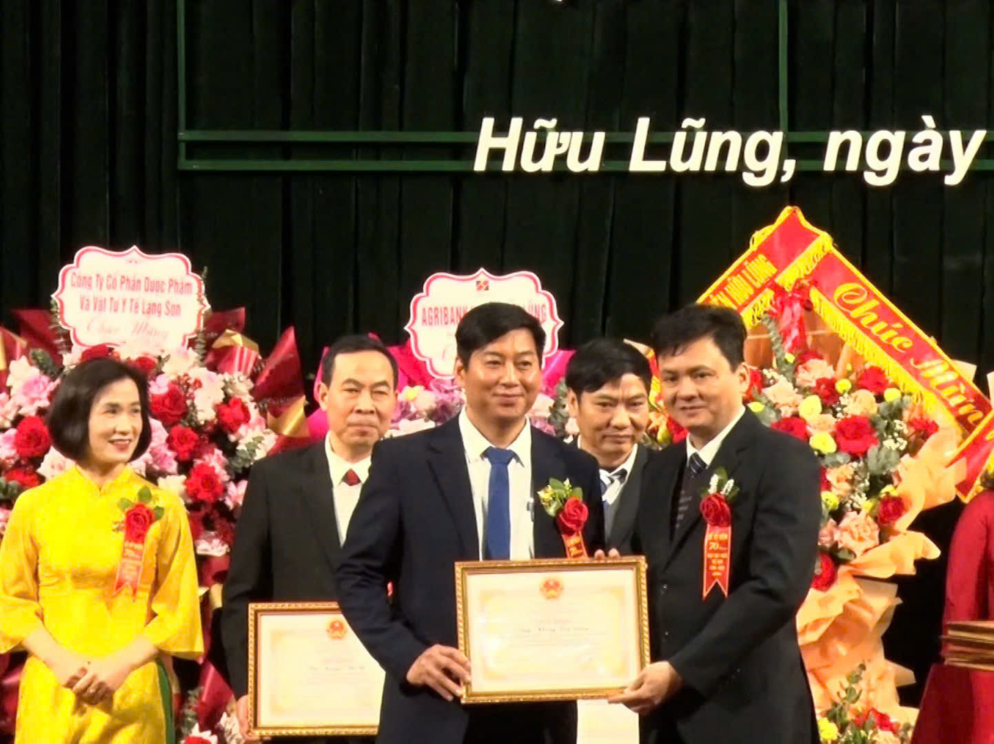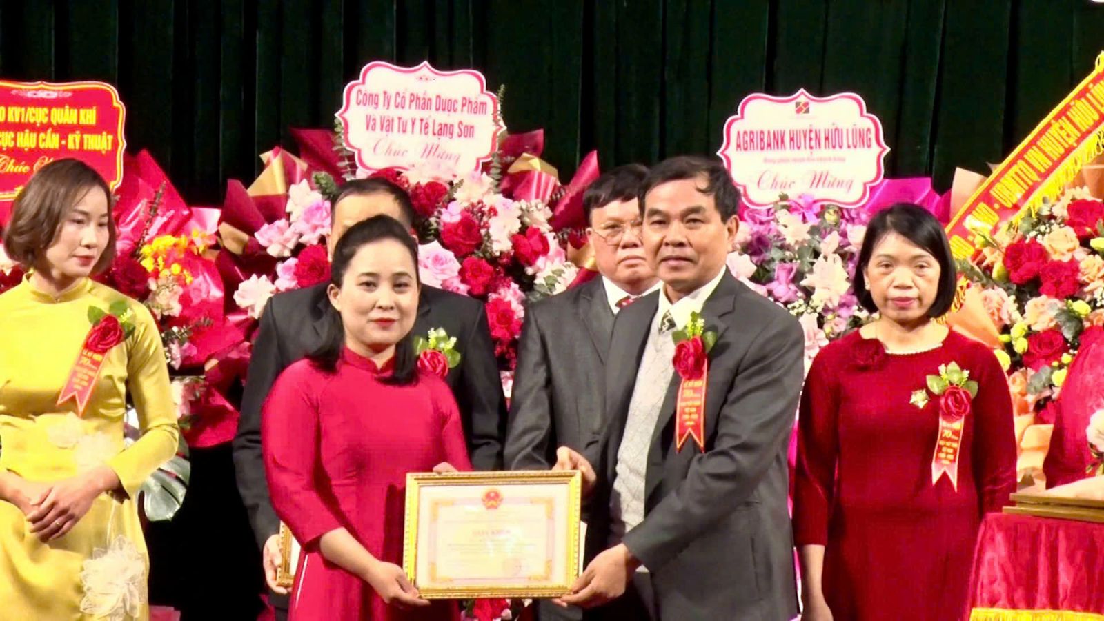 Ảnh: Lãnh đạo Sở Y tế tỉnh tặng hoa chúc mừng ngành Y tế huyện Hữu Lũng