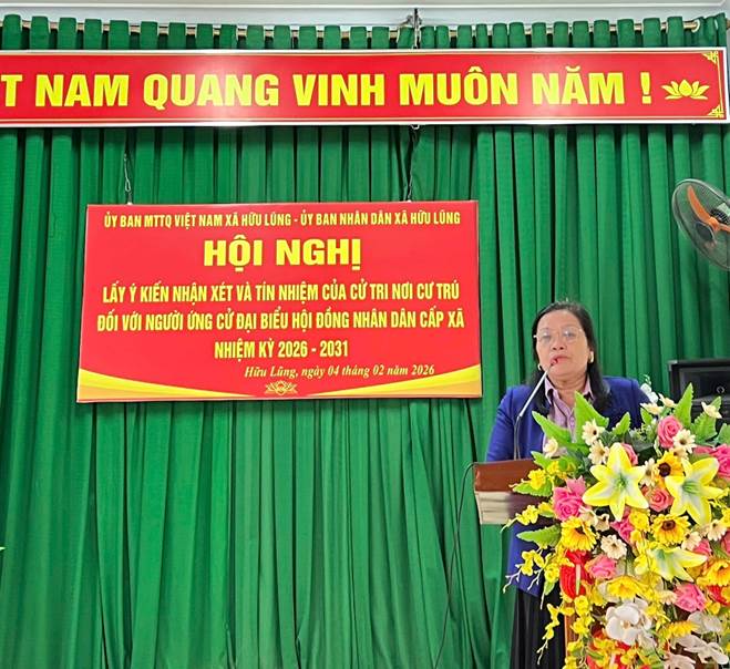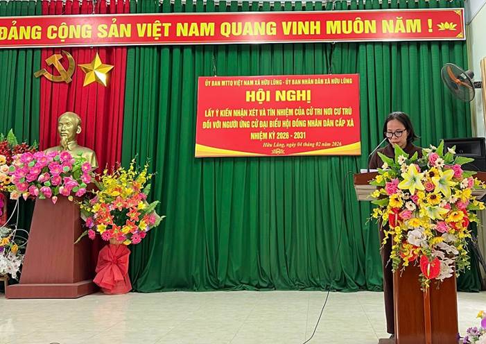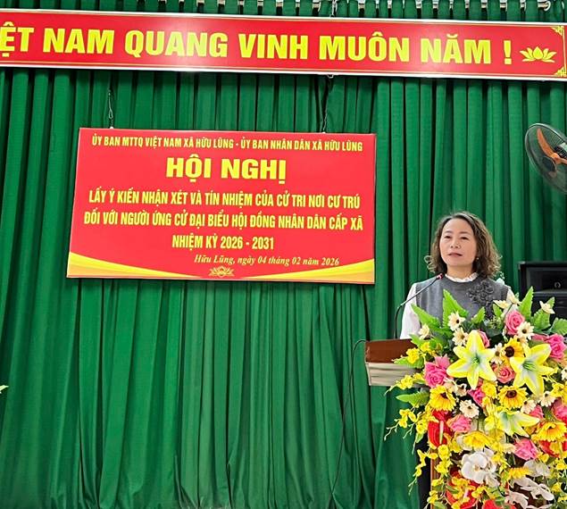 Thực hiện các văn bản chỉ đạo, hướng dẫn về công tác hiệp thương giới thiệu người ứng cử đại biểu Hội đồng nhân dân các cấp nhiệm kỳ 2026–2031, vào hồi 08 giờ 00 phút ngày 04/02/2026, tại Nhà văn hoá thôn Tân Mỹ 2, xã Hữu Lũng, Ủy ban MTTQ Việt Nam xã Hữu Lũng phối hợp với UBND xã tổ chức Hội nghị lấy ý kiến nhận xét và tín nhiệm của cử tri nơi cư trú đối với người ứng cử đại biểu HĐND cấp xã nhiệm kỳ 2026–2031.