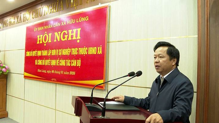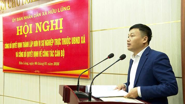 Ngày 06/01/2026, UBND xã Hữu Lũng tổ chức hội nghị công bố quyết định thành lập đơn vị sự nghiệp trực thuộc UBND xã và công bố quyết định về công tác cán bộ.