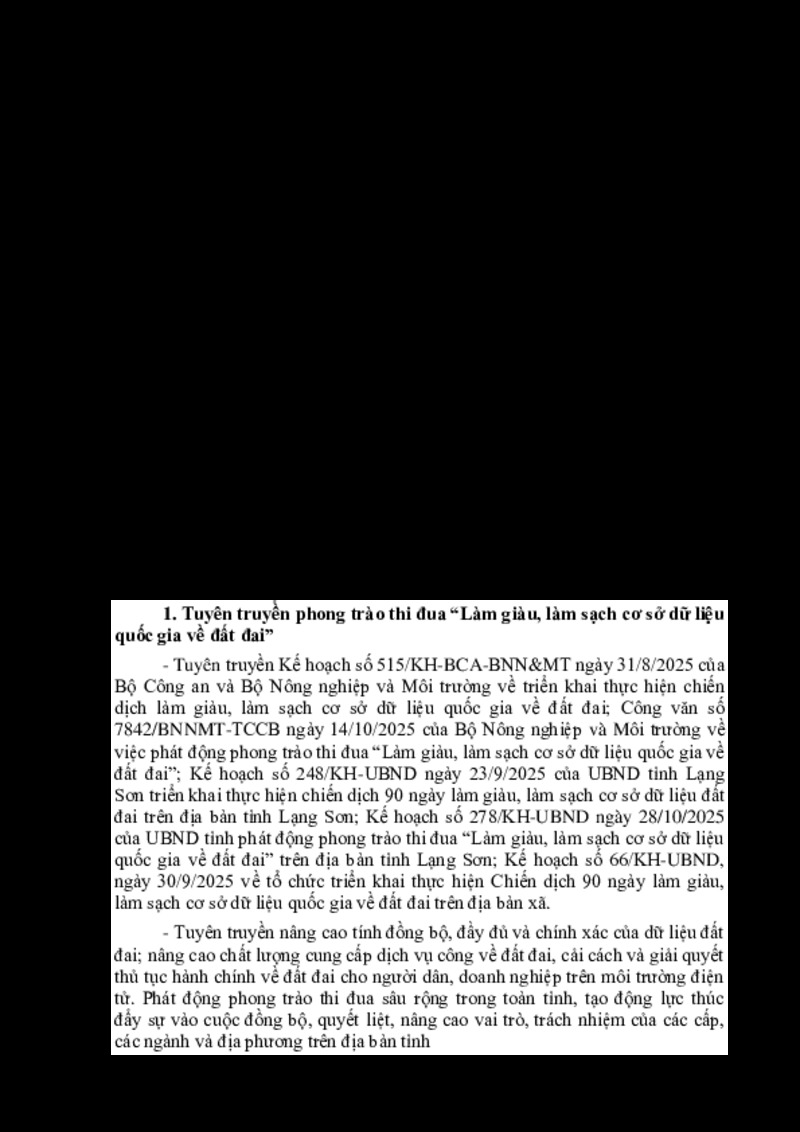 | Tiêu đề văn bản | V/v tuyên truyền: phong trào thi đua "Làm giàu, làm sạch cơ sở dữ liệu quốc gia về đất đai"; triển khai trong công tác quản lý thuế; công tác chống buôn lậu, gian lận thương mại và hàng giả | ||